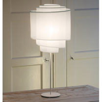 純白の耐炎生地で形作られたやわらかなフレア。 そこから漏れる優しい光は、空間をロマンティックに演出します。 デザイナーのペトリ ヴァイニオは、アールヌーボの照明にインスピレーションを得てこのコレクションを製作しました。ペンダント、テーブルランプ、フロアランプと空間にあわせて演出できるモデルがラインナップされています。