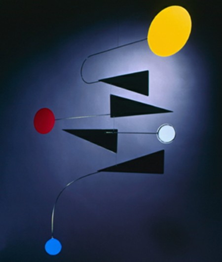 ジョエル ホチキス デザインのモビール。幾何学的なフォルムと鮮やかな色彩のモビール。現代アートの香り一杯のモビールは、空間に漂う良きアートピースとなります。